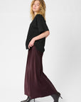 The Estelle skirt is an elegant, full length, maxi skirt with endless styling options. It has a mid rise waist with an elastic, hidden waistband, and it has a regular fit with a straight silhouette.