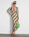 Cut on the bias for an effortless drape, the Elysse slip dress brings together bold stripes and soft movement. With a plunging V-neck, long sleeves, and a figure-skimming fit, it’s designed to do all the work for you. Just zip it up and go.